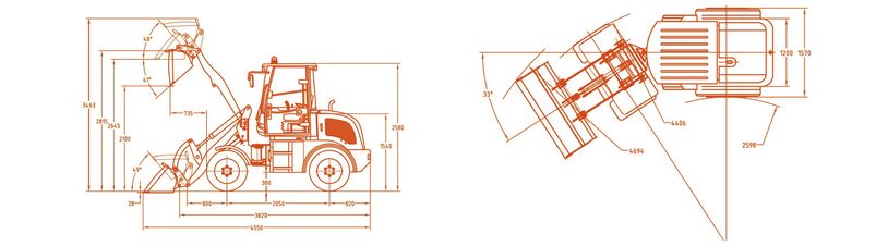 Moteur Xinchai euro5, godet standard, cabine rops&fops inclinable, siège et volant ajustable, pneu 31*15.5-15 agriculture, verrouillage du cylindre de levage et de direction, caméra de recul, manette mécanique, chaufrette, chauffe moteur et fonction flottante.